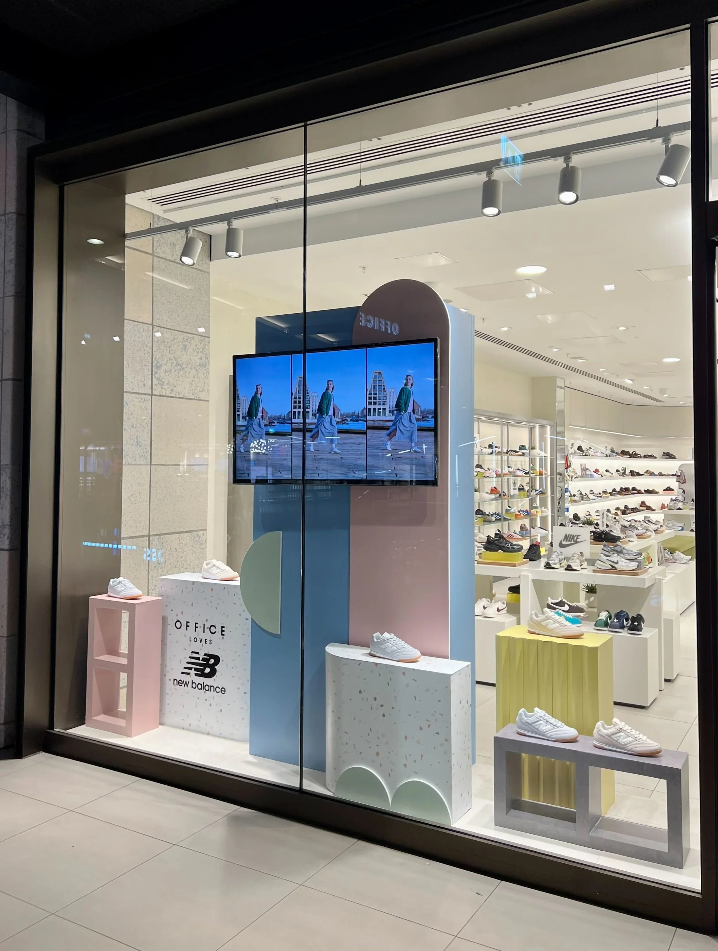 For the launch of the New Balance RC42 campaign, the window was designed to channel the soft, playful, Scandi energy from the Copenhagen based shoot, straight to the streets of London.